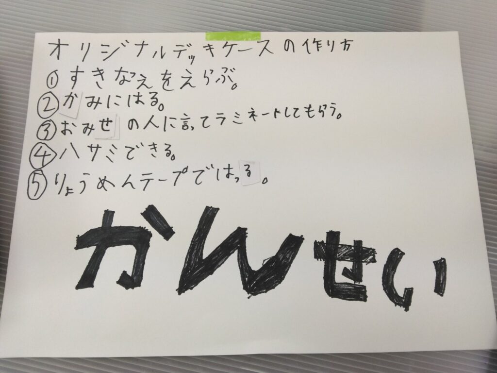 さらに、ポケモンカード部による「オリジナルデッキケース作り」も好評でした。工作やラミネートなど工程が多く、店長役のこどもたちは大忙しでしたが、「自分で作ったものを大事に持ち帰る」という”体験を提供する”ことができたことは、苦労を伴うからこそ得られる学びとして、こどもたちの自信につながりました。