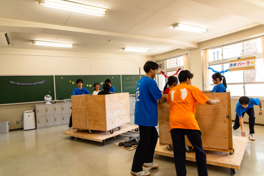 さらに、高校1年生が中心となって制作した「コーヒーカップ遊具」は、独学で設計から製作まで挑戦した大掛かりな企画。来場者を驚かせ、楽しませる力作となりました。