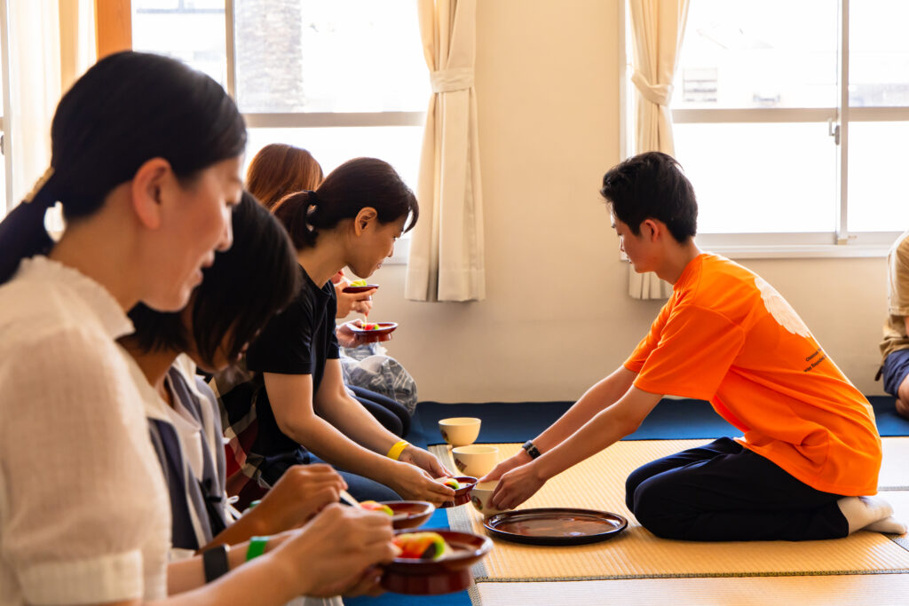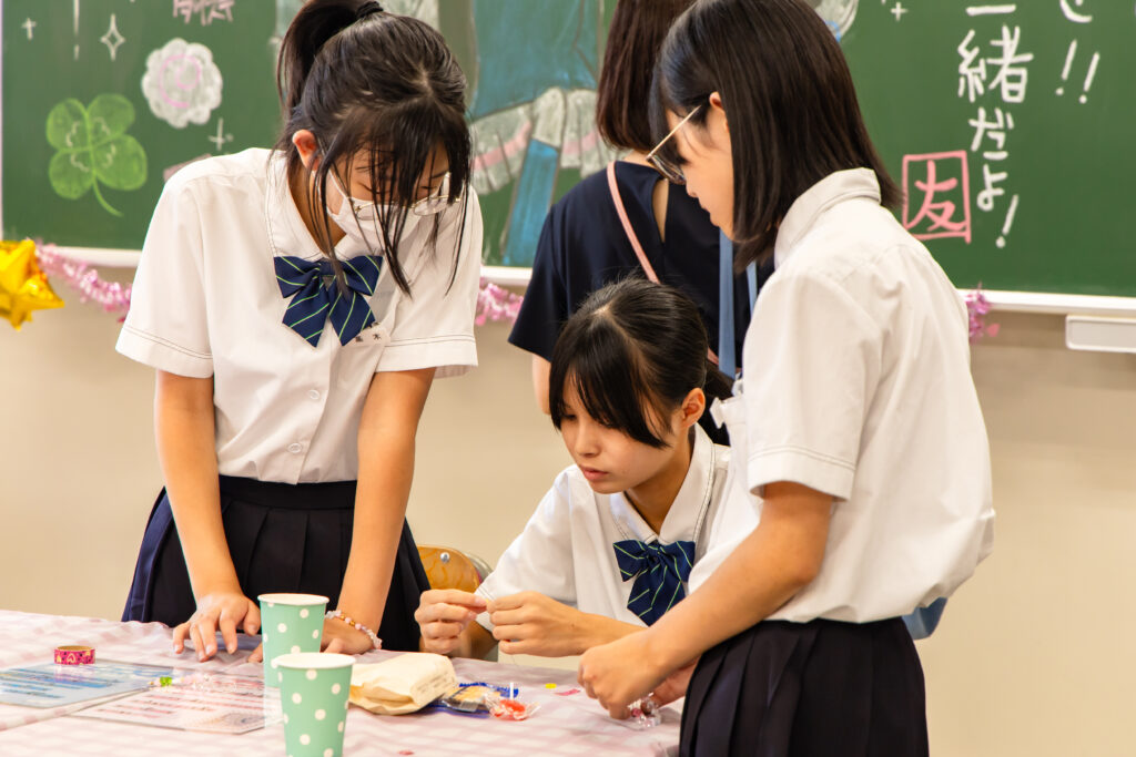 - 茶道クラブのお茶会では、「御菓子司 寳月堂」とコラボして生まれたオリジナル和菓子「カイノキ」を提供。学校のシンボルである楷の木をモチーフにした特別なお菓子が話題を呼びました。