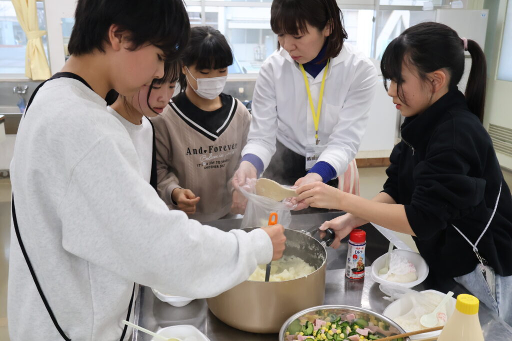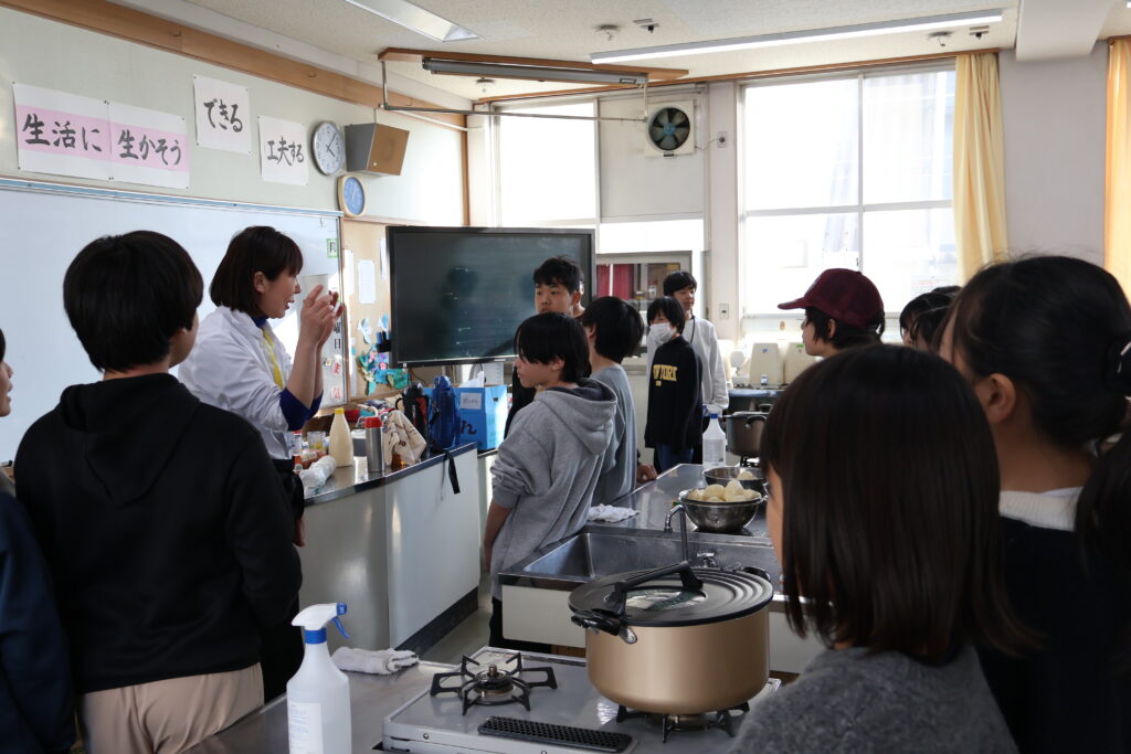 調理実習では、一般社団法人パッククッキング協会ジャパン代表理事の池田奈央さんを講師に迎え、災害時にも役立つ「パッククッキング」に挑戦しました。パッククッキングは、耐熱性のポリ袋に食材や調味料を入れて湯煎で加熱する調理法で、電気やガス、水が十分に使えない状況でも温かい食事を用意できる方法として知られています。