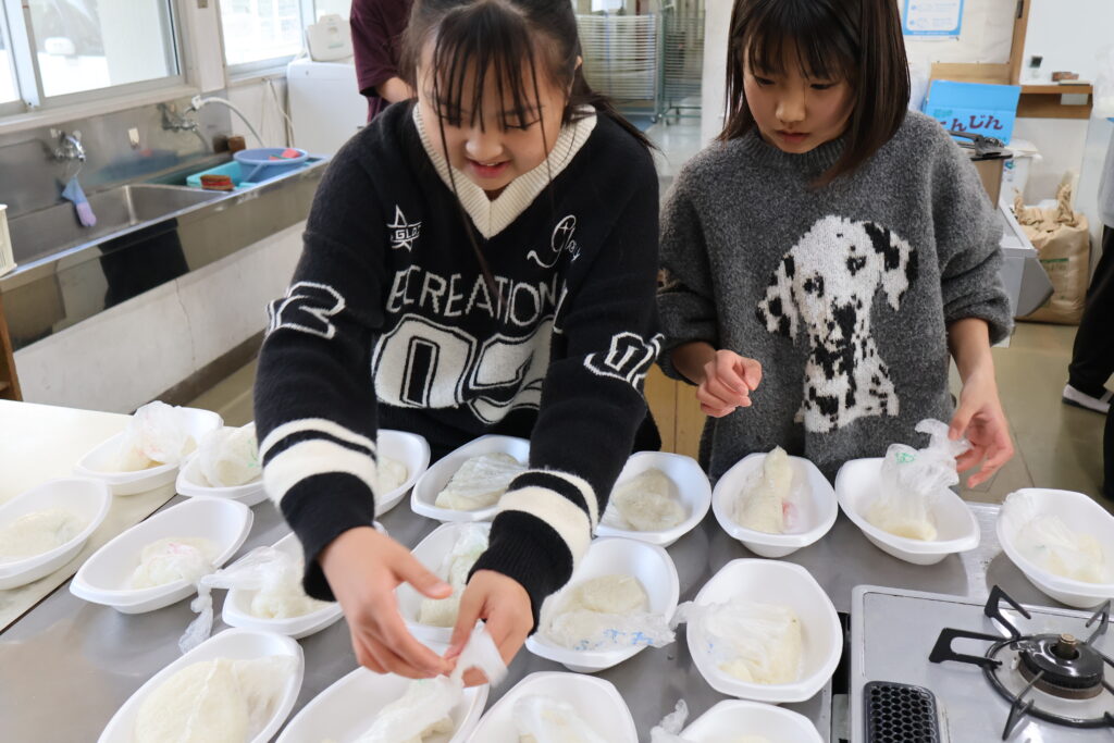 子どもたちは、自分たちで米を量り、カレーやポテトサラダづくりに取り組みました。普段の家庭での料理とは違い、大人数分を準備する難しさもあったようですが、協力しながら一つひとつの作業を進めていきました。出来上がった料理は、皿にラップを敷いて盛りつけるなど、災害時を意識した工夫も加えられ、防災の知識が自然と体験の中に溶け込んでいました。